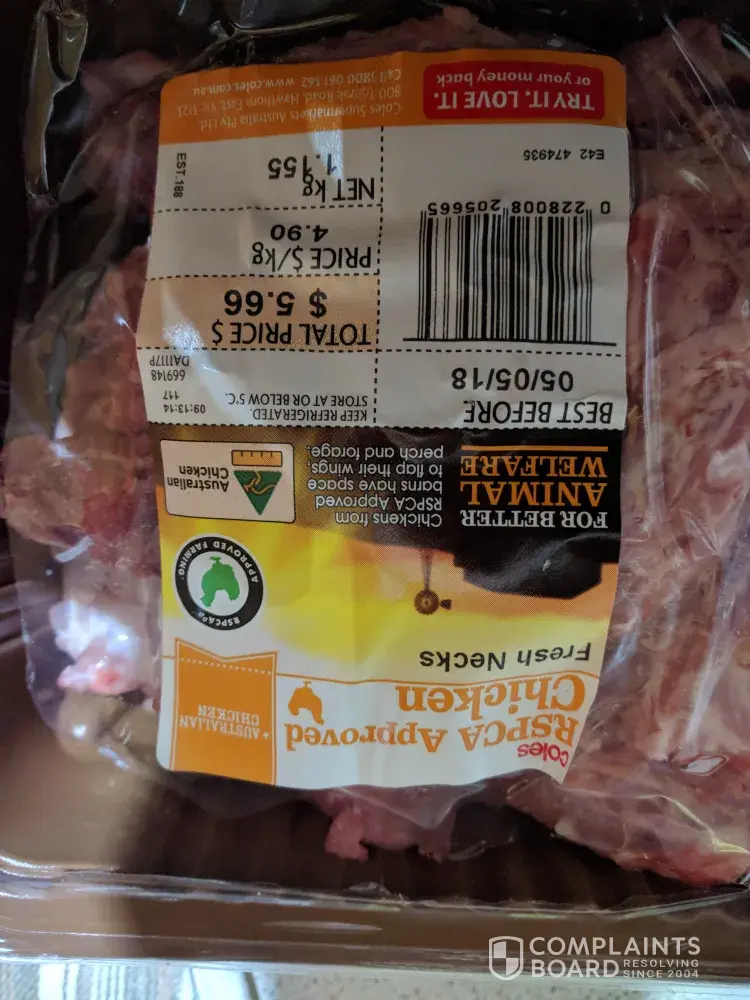 Coles Supermarkets Australia im complaining about rotten coles brand rspca approved chicken necks