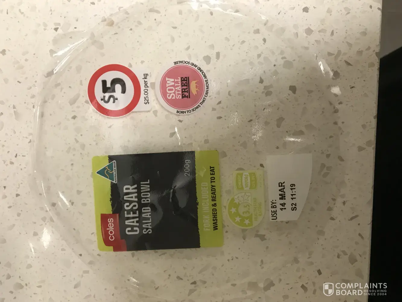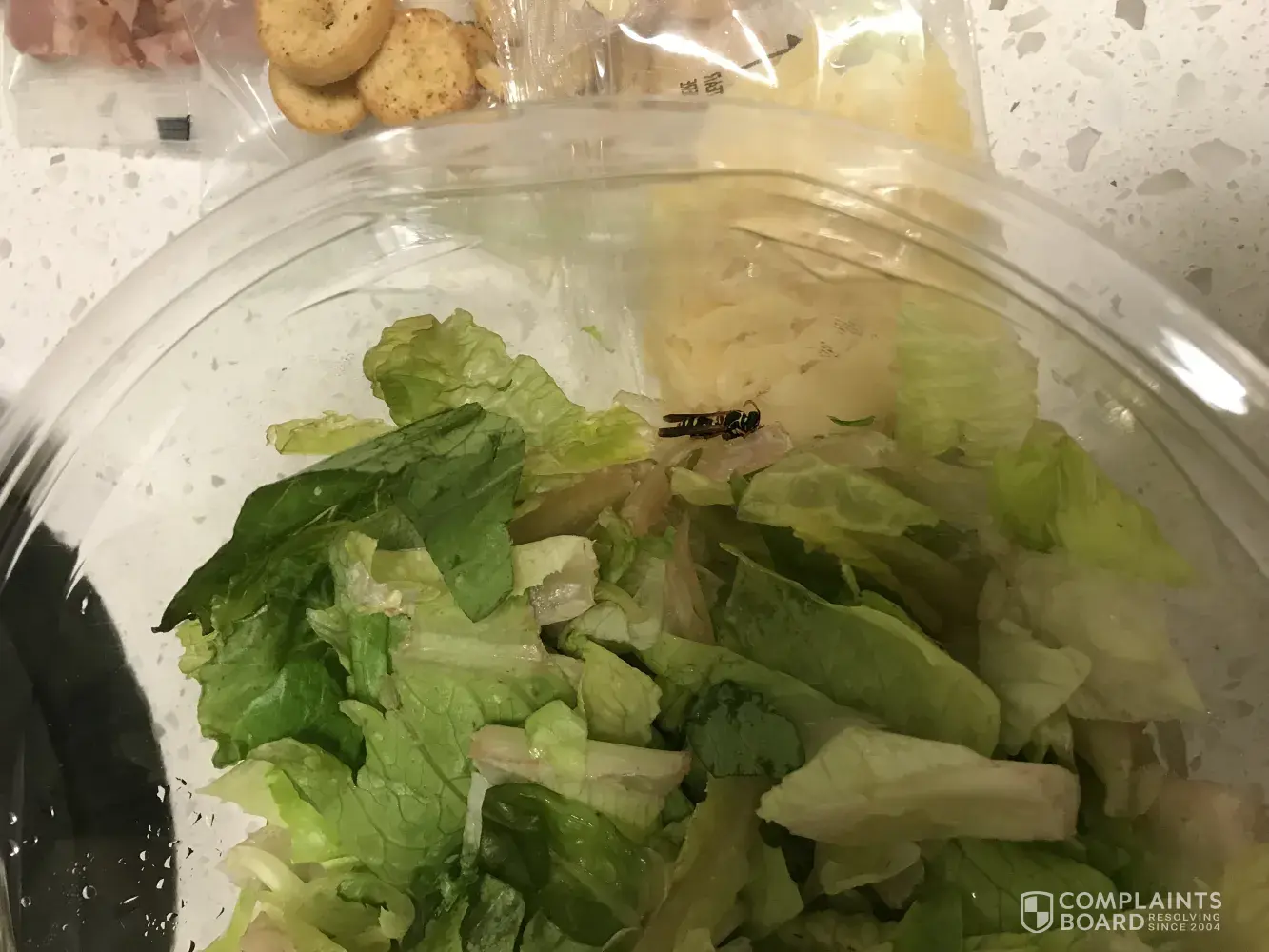 I purchased this product from your Coles store at Keilor Plaza Victoria on Monday 12th March'18. When I opened it today I found a wasp in the bowl and the salad, as usual was going brown even though the due by date was today, 14/3/2018.