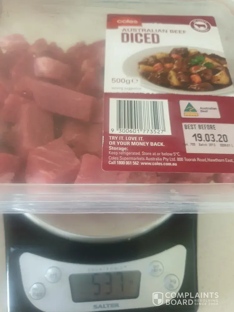 Advertised NET weight on packaging is "500gms e".