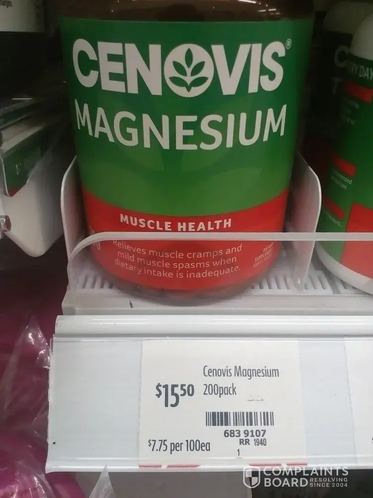 This morning, just before noon on Thursday the 26th of March, when we scanned a bottle of Cenovis Magnesium tablets (200 tablets) at their self-checkout, it came up as $16, despite the shelf tag indicated $15.50.