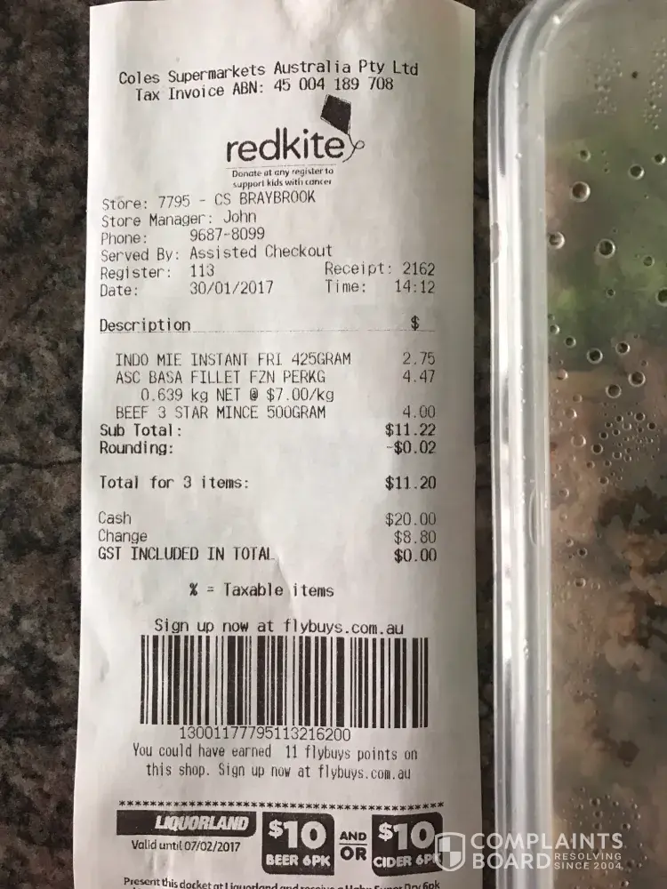 On 30 Jan 2017, I bought a box of minced beef at Coles Central West. I cooked as soon as I got home which i stir-fired the minced beef for work tomorow ( i ate abit). The next day when i heated up again, i realized there were many bugs moving around my container. And the next day I got really sick.