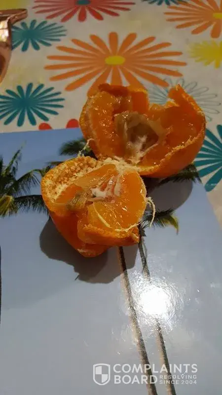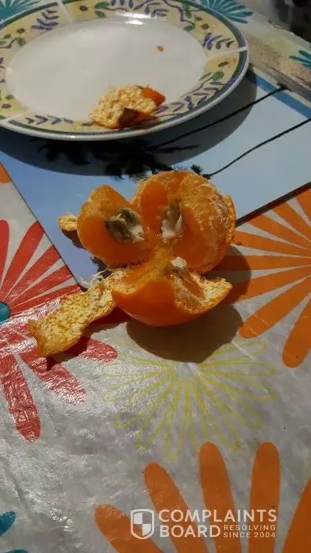 When opening the mandarin it was mouldy inside. We opened another and same result. This is my fiance favourite fruit. It is also an embarrassment to our country as she is visiting from overseas.
