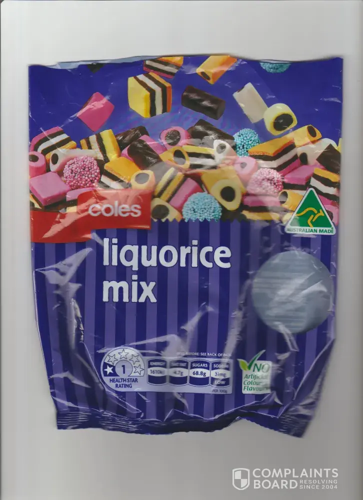 I would like to be compensated in the form of a coles credit so I can buy another bag which hopefully will have all of the described licorice mix inside. thank you.