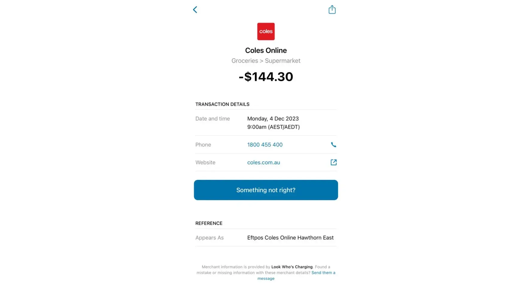 This also happened to me but the charge was only $19. Also Coles online Hawthorne East. Had to cancel my Commonwealth bank card for them to look into it.