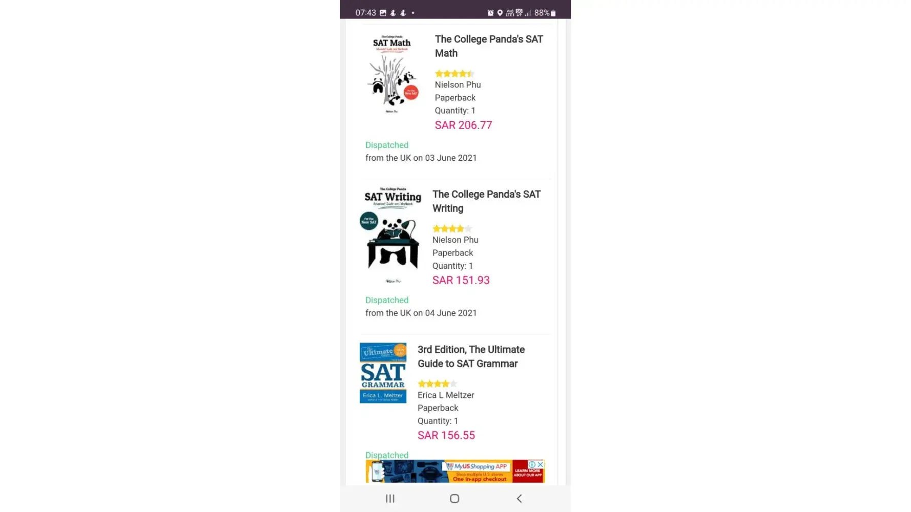 I bought him sat book from UK to help him pass the exam .