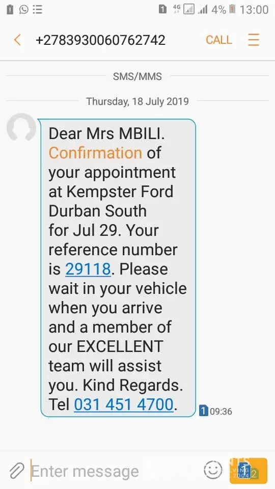 I took my vehicle for an annual service today. I received absolutely poor service. I feel that I was not treated fairly. After dropping the vehicle off at around 7:30am I received a call around 11am to advise that my wiper blades need to be replaced, which I immediately advise that I have a maintenance plan, the service advisor ask me to sms or email proof(last year they did the brake pads so I didn't feel the need) however I sent this 30minutes later. I had to follow up via email as my calls were not getting attended to nor returned. The 2 main issues were from 3:15pm I tried calling my service advisor and left messages and emails to return my call as nobody has called to advise if the vehicle is ready(not even a call to say all went well). at 3:55pm I get a call from the driver to say he is 2minutes away, really poor communication, I mean no one called to even tell me my car is ready and the driver is on the way? further to this after requesting my service book to be stamped, I now find an unstamped book? I told the advisor at 7:30am to ensure this gets done(not that I should be telling how to do your jobs) I need my book stamped, This is a huge Impact as I am looking to sell this vehicle and a potential buyer as requested this information. I have not been treated fairly from the beginning. I have a BMW as well and your neighbours treat me with world class service, which you guys should aim for. they call you to advise you from start to finish . I really hope this is not your standard service level as I have had the same experience last year January and waited outside 20minutes for the driver, lets not go there but the poor service seems to be consistent. I don't know whether to purchase another Ford due to this or just use another branch to service my vehicle. My Number is [protected](Mr N Pillay)