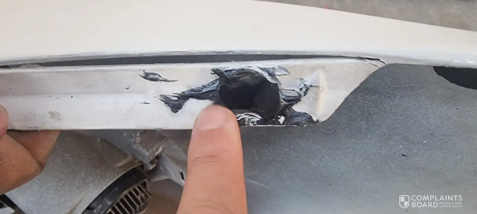 After a few weeks the filling cracked and pulled out the paint. I contacted Robin the Sales Manager , he said he will not fix it. I took it to a panel beater to have it fixed, when he checked it out, he saw that the filling was actually silicon holding the bumper in place.