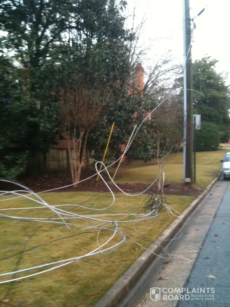 We have had a very dangerous situation for 48 hours now, and can not get Comcast to address it. A Fedex truck hit some low hanging electrical wires that run from pole to pole across our street. It blew a transformer and sent all power lines for electrical (Georgia Power) Telephone (AT&T) and cable (Comcast). This happened on Wednesday afternoon, 12/19. The Fire dept responded w police. Our power and telephone were fixed and back in 2 hours. Comcast however has a very different plan. There is at least 80 feet of wire that is shredded and dangerous sitting in our yard, and they have not showed up yet. We have been told repeatedly they would be here to address it. Its Friday morning, the pile of wire is still there...I have received an automated call telling they have "fixed" the service problem in our area! Really! We still don't have Cable or Internet and the dangerous wires are out there for all the neighborhood kids to play with. Good bye Comcast...