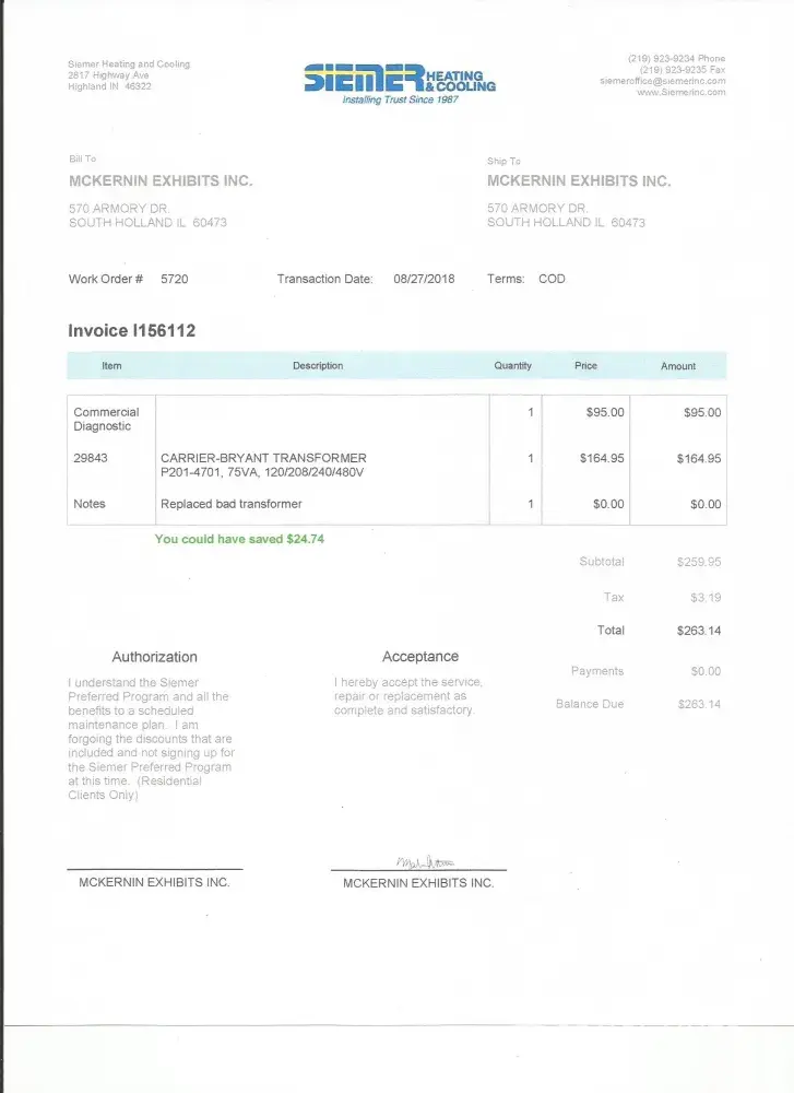 My business is located at 570 W. Armory Drive in South Holland. We have again been affected by a current surge - over the past 3 years we have lost (4) 3phase motors which all shut down sections of our shop until we were able to replace the motors. (We previously called about this problem and obviously it has never been addressed) After this weekend we returned to our office to find the transformer on our 15 ton roof top HVAC unit had to be replaced because of another surge. (8-26-27) Cost of repairs $263.14