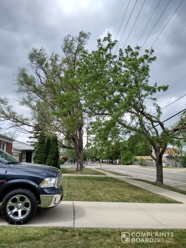 Each year your guys trim our tree. This year there were no branches in or near the power lines. Each year they keep cutting on only one side of the tree, which causes the tree to lean toward the house. It will take one good storm to fall on my house and kill us. They end up cutting the tree so badly that there is nothing for the tree to do is die. I can send you a picture of his dangerous it us the way your tree trimmers cut all trees. I will sue you when the trees fall on our house, fir sure. I will post your tree trimming results on line and show how dangerously bad shape, you have left thus tree. nd giving us a new tree to plant ., Won't help.as that tree will be killed by your tree trimmers
