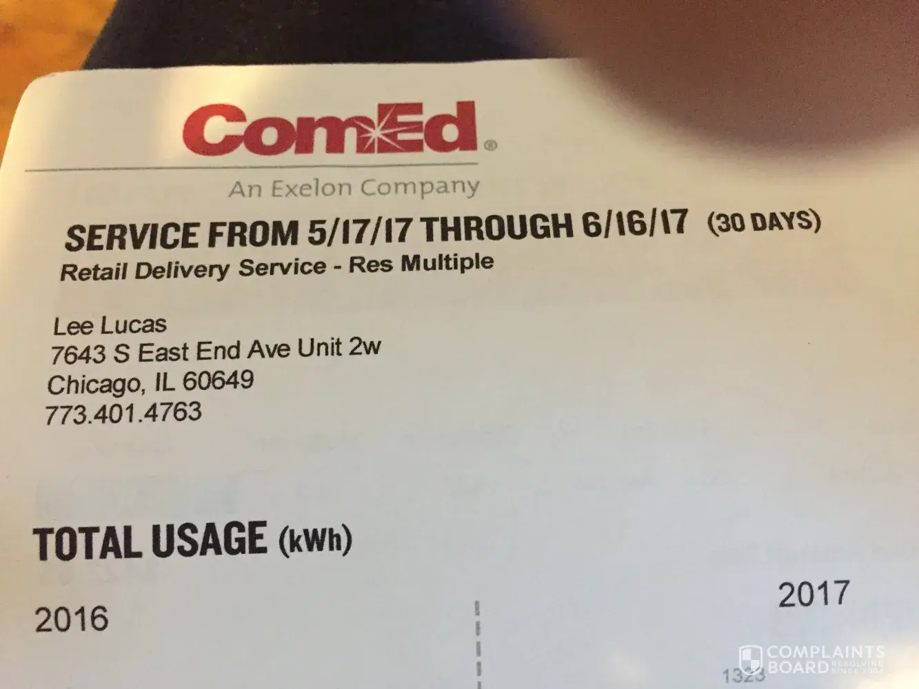 I lee Lucas live at 7643 s east end apt 2w Chicago. My electric bill spiked from about average $50 a month for the months of April and May for no apparent reason. I call comed and they gave me no explanation. Then it dropped back to normal, I got threatened with disconnection notices if I didn't pay. I feel I should be credited with a refund. I been here two years and my bill always normal about $50. No one checked the meter or gave me an explanation