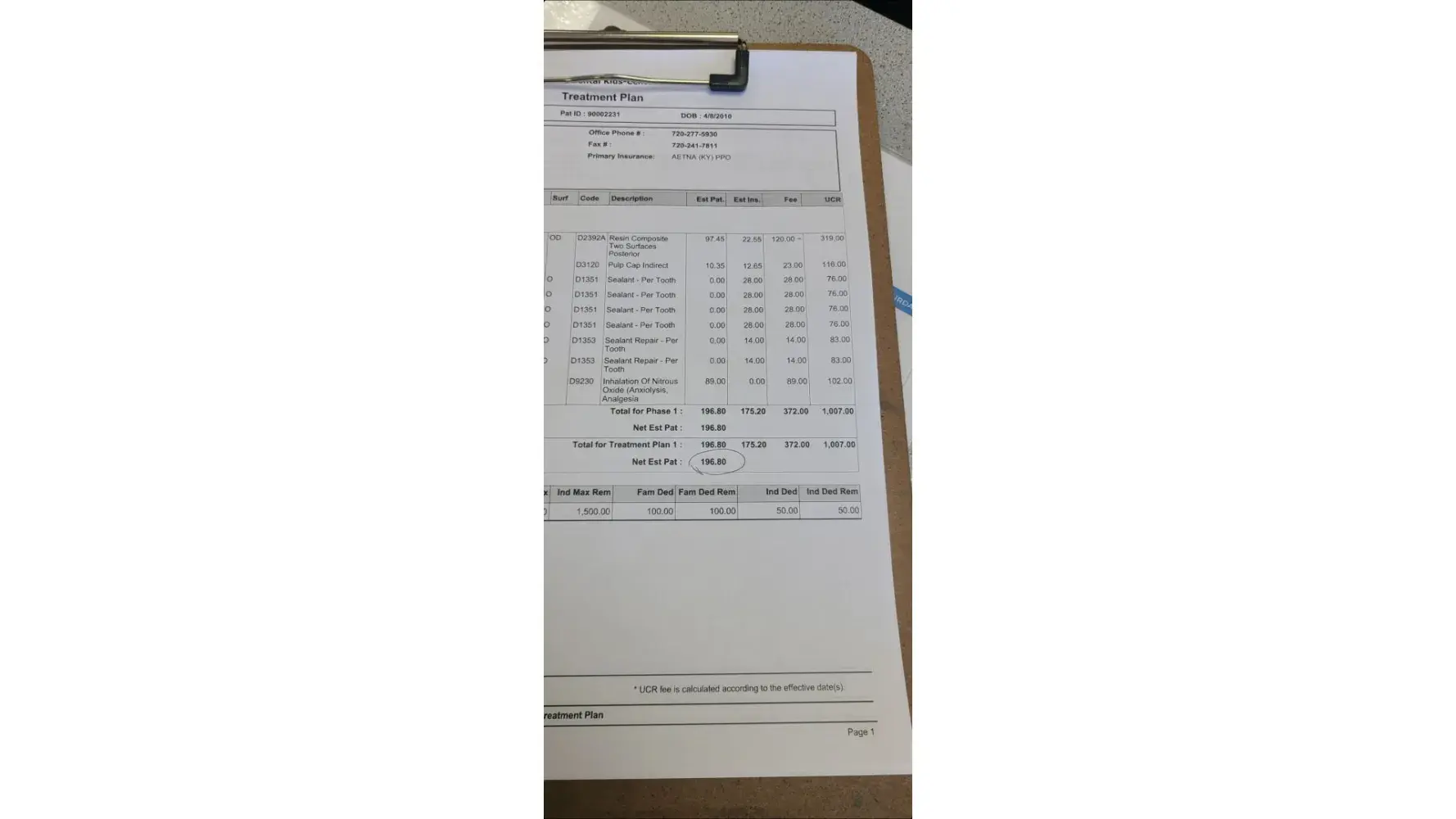 June 15th my daughter came to Comfort Dental for a cleaning and a filling. My daughter has Aetna Dental and Medicaid Dental insurance. After her appointment the billing department told me a had a remaining balance of $196 after the insurance paid their portion.