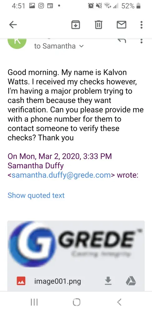 There’s nothing you can resolve in my situation because I was there for 45 minutes and then the fat guy in back comes and says the only reason we went through with it is because you were going on about you cashing 2 checks on the same day and it wasn’t an issue and I did and your calling me a liar now as well it’s in the computer right there one is my company check and the other is my