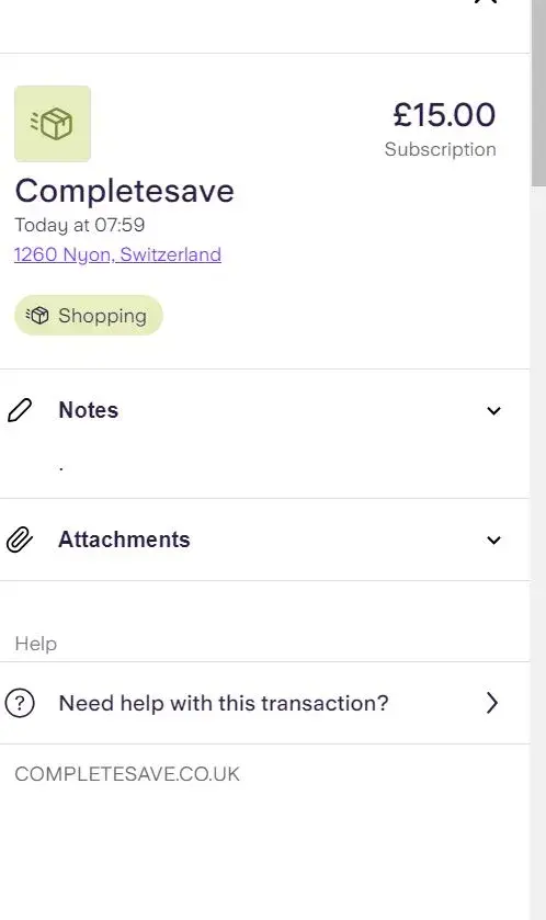 Shown on Bank Statement as: COMPLETESAVE.CO.UK NYON CH