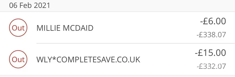 Complete Savings / Complete Save Taking 15£ from my bank account