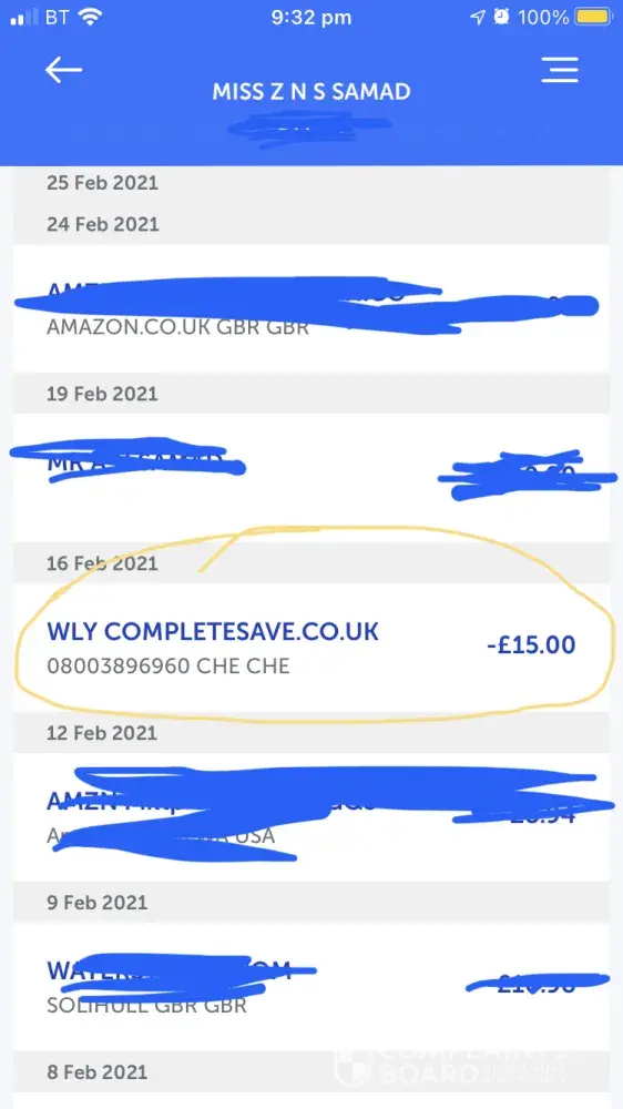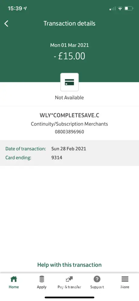 I have never bought anything, or set up any accounts/free trials etc from this, this is the first I have ever heard of WLY*completesave, so I am just wondering why there has been money taken from my account by you. It has me worrying I have been scammed/hacked. I can't imagine how you would have received my details as I have never shared them with you.