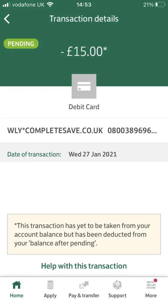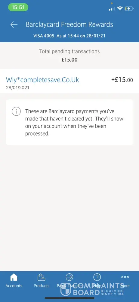 I just got paid and found out overnight £15 had been deducted from my account from a company called 'Complete Save'. I have never in my life heard of such a service. I haven't been on any malicious websites lately and I barley ever sign up to any shopping website ever and I surely don't give my credit card details out. I am very upset with this random deduction off my account.