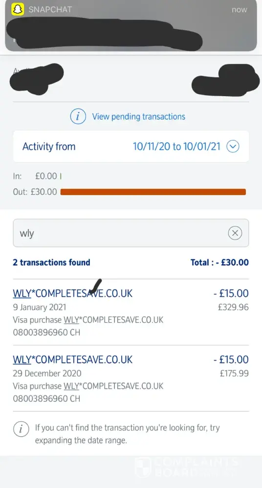 I have looked through emails and all my recents and receipts but still haven't found any interaction with "Wly Complete Save.co.uk"