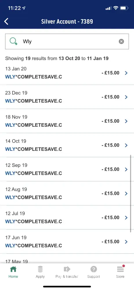 For the last few months £15 has been coming out in the name of wlycompletesave I need to stop this and can't find how to. What a con. I need you to stop taking my money as I am getting no service from you