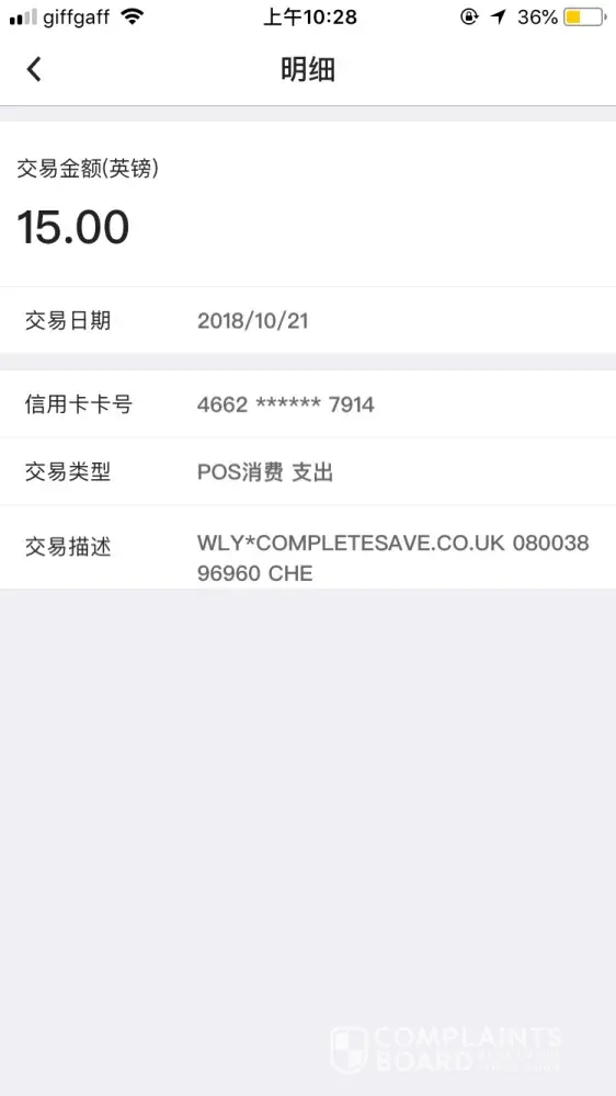 I've never heard about the website until this money my credit card account showed that GBP15 was deducted by WLY CompleteSave.co.uk