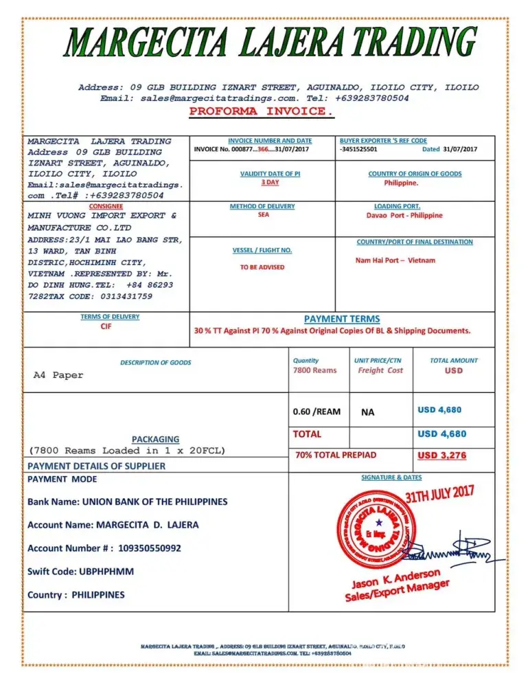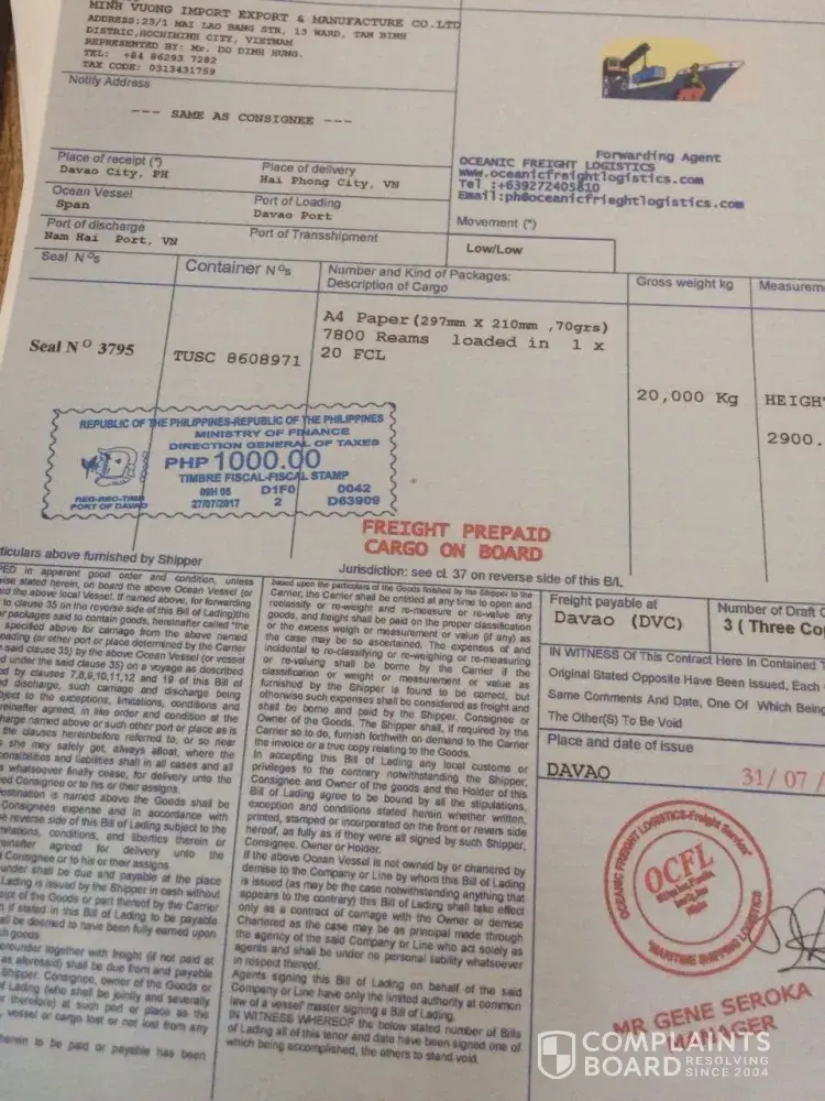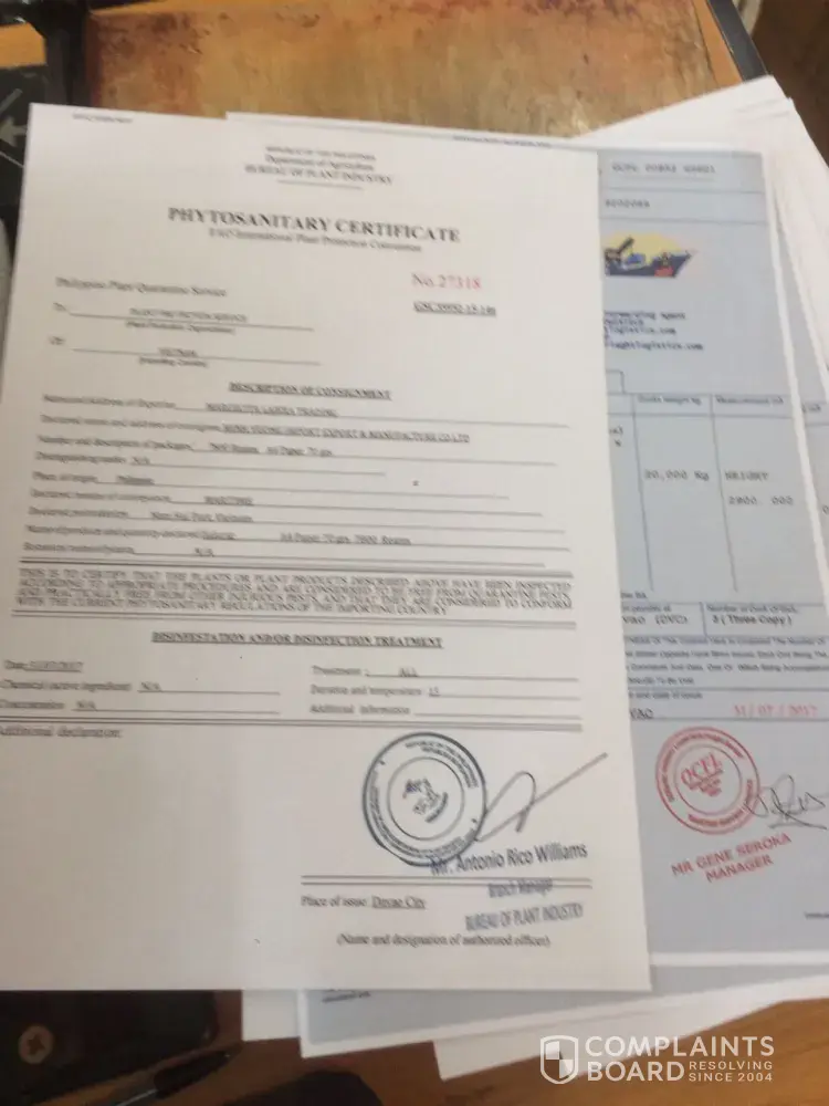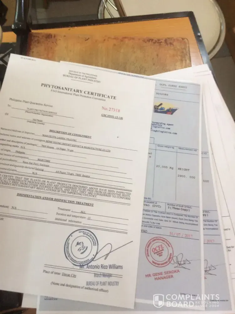 We have agreed and I margecita lajera trading company in philipines to deal paper container 20 feet at $ 4, 680 I paid them $ 1404 in advance On the basis that the remaining amount is paid 3278 after he sends us pictures of b / l properly and after to make sure the goods Surprise then that he wanted to send him the rest of the money has sent us picture...