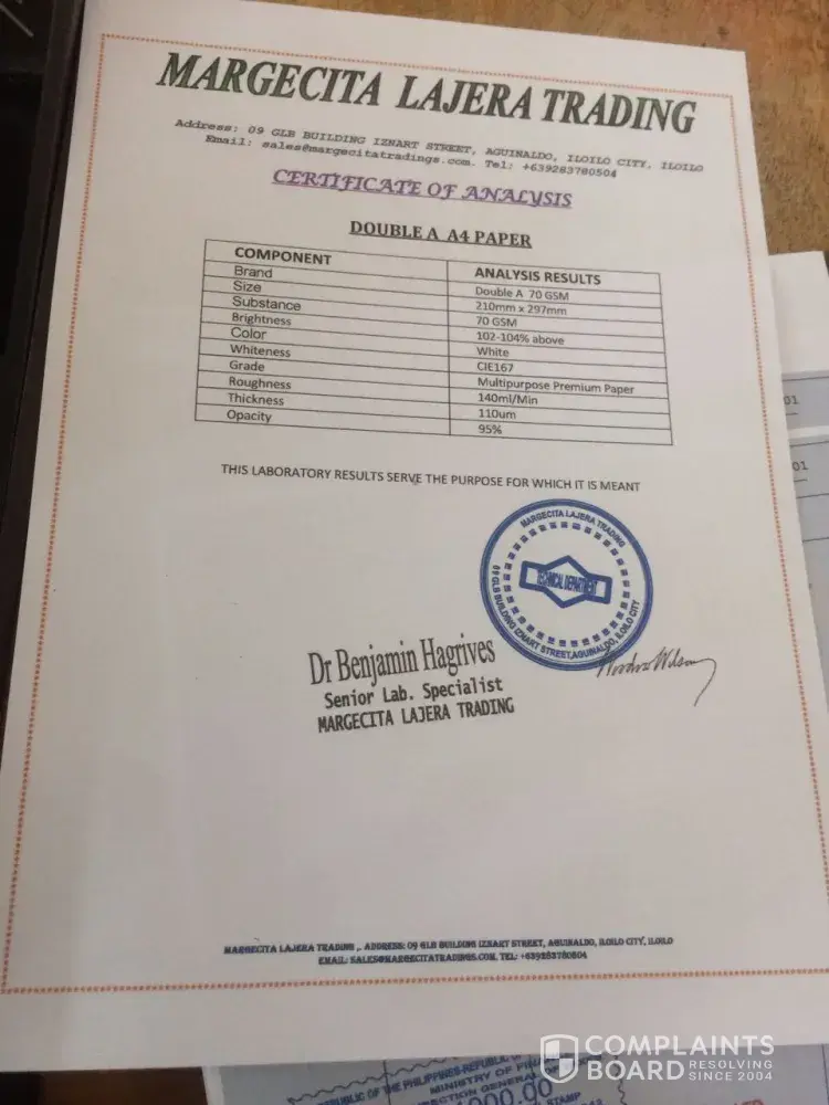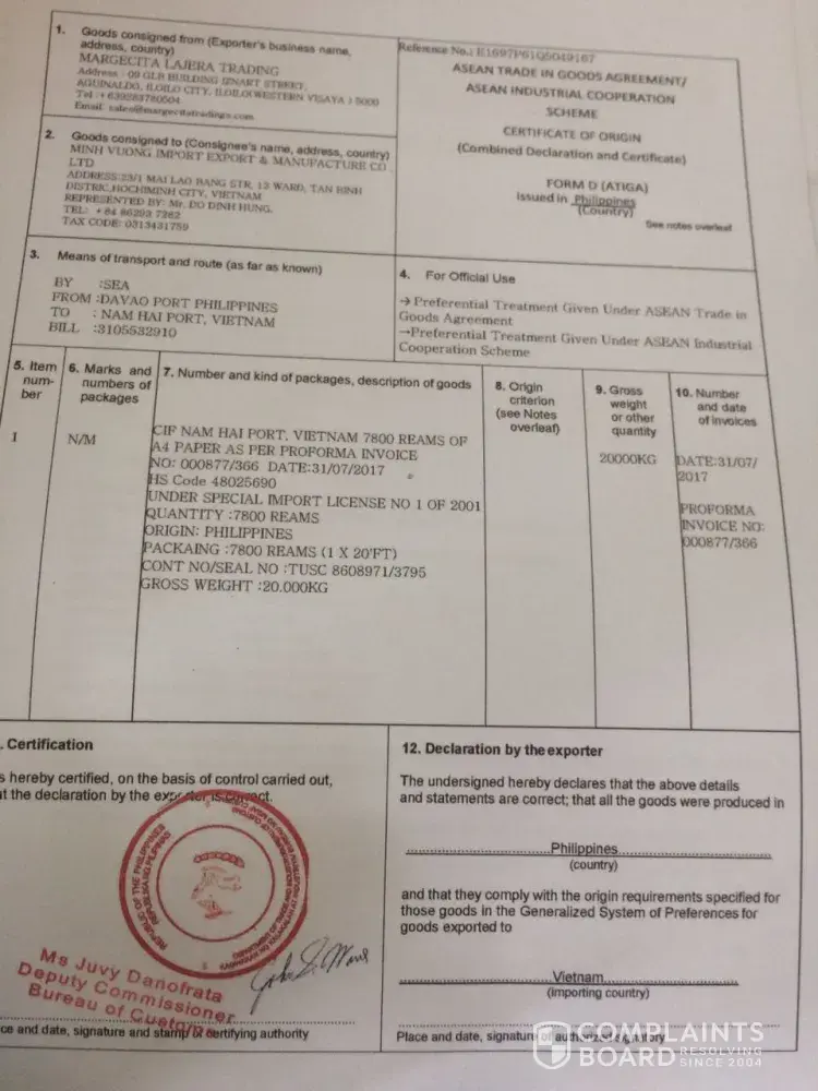 Read full complaint and 12 commentsMinh Vuong IETM Co., Ltd - copy paper a4 double a