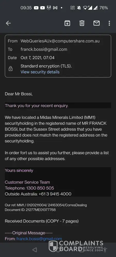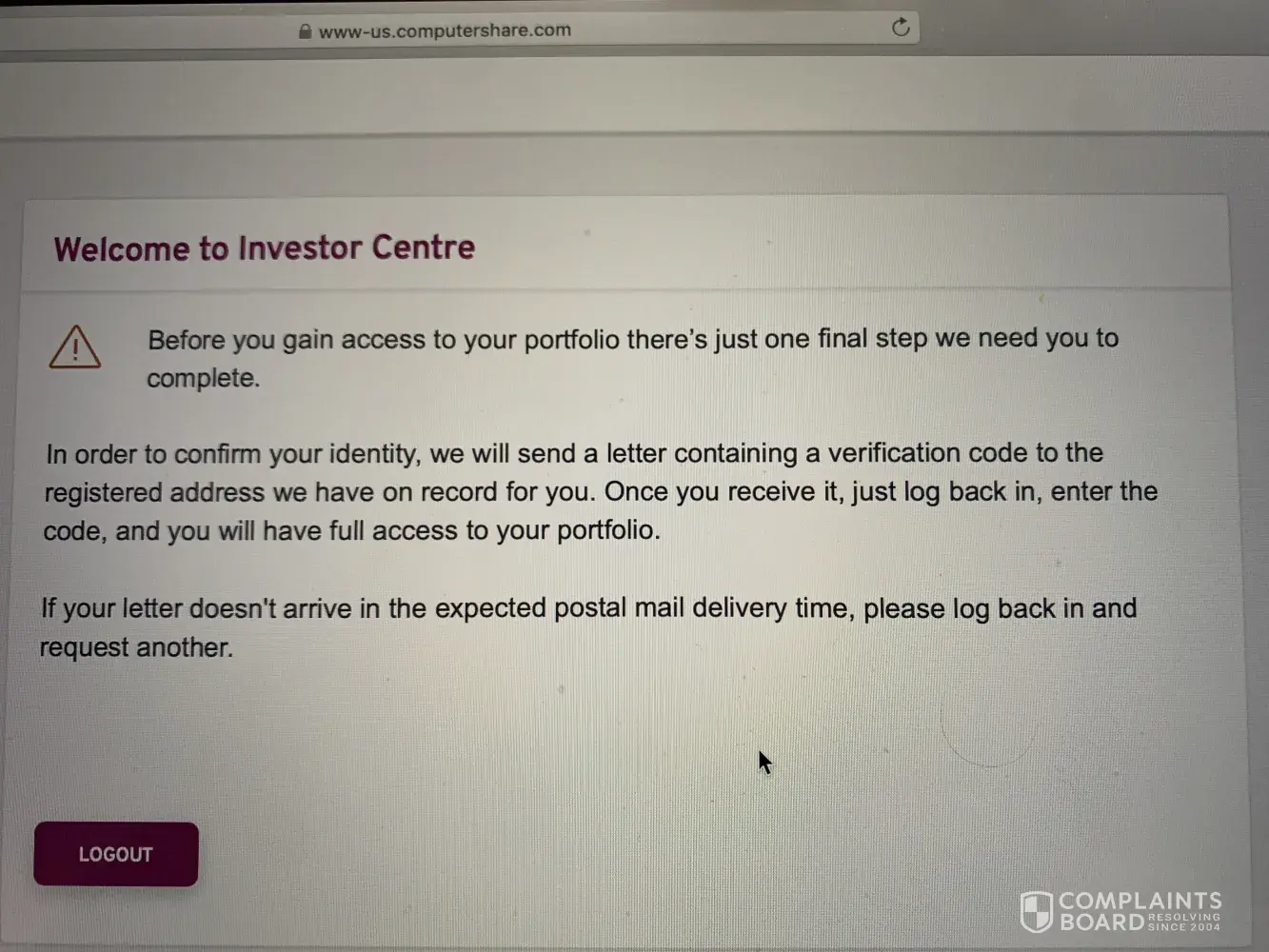 Desired outcome: I want to warn others from the frustration of dealing with Computershare