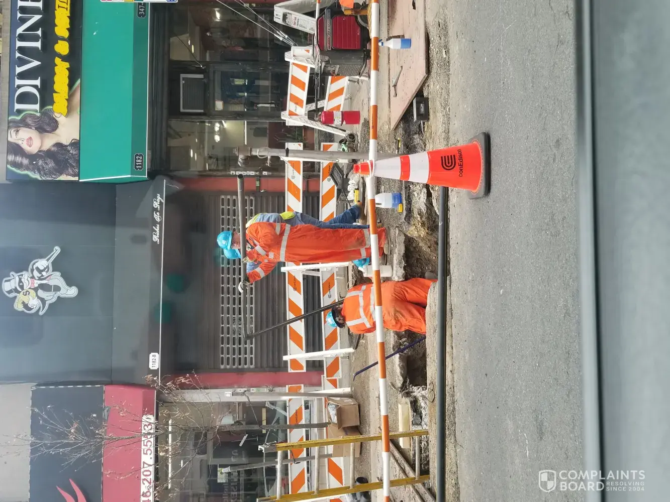 About 3 days, there are ConEdison workers working directly in front of my business establishment, to which, NO advance notice was provided; of their work on the sidewalk directly. No notice posted on my business gate or any of the other businesses either. I am unaware of a start date or finish date and I was NOT able to open my business because of this inconvenience.