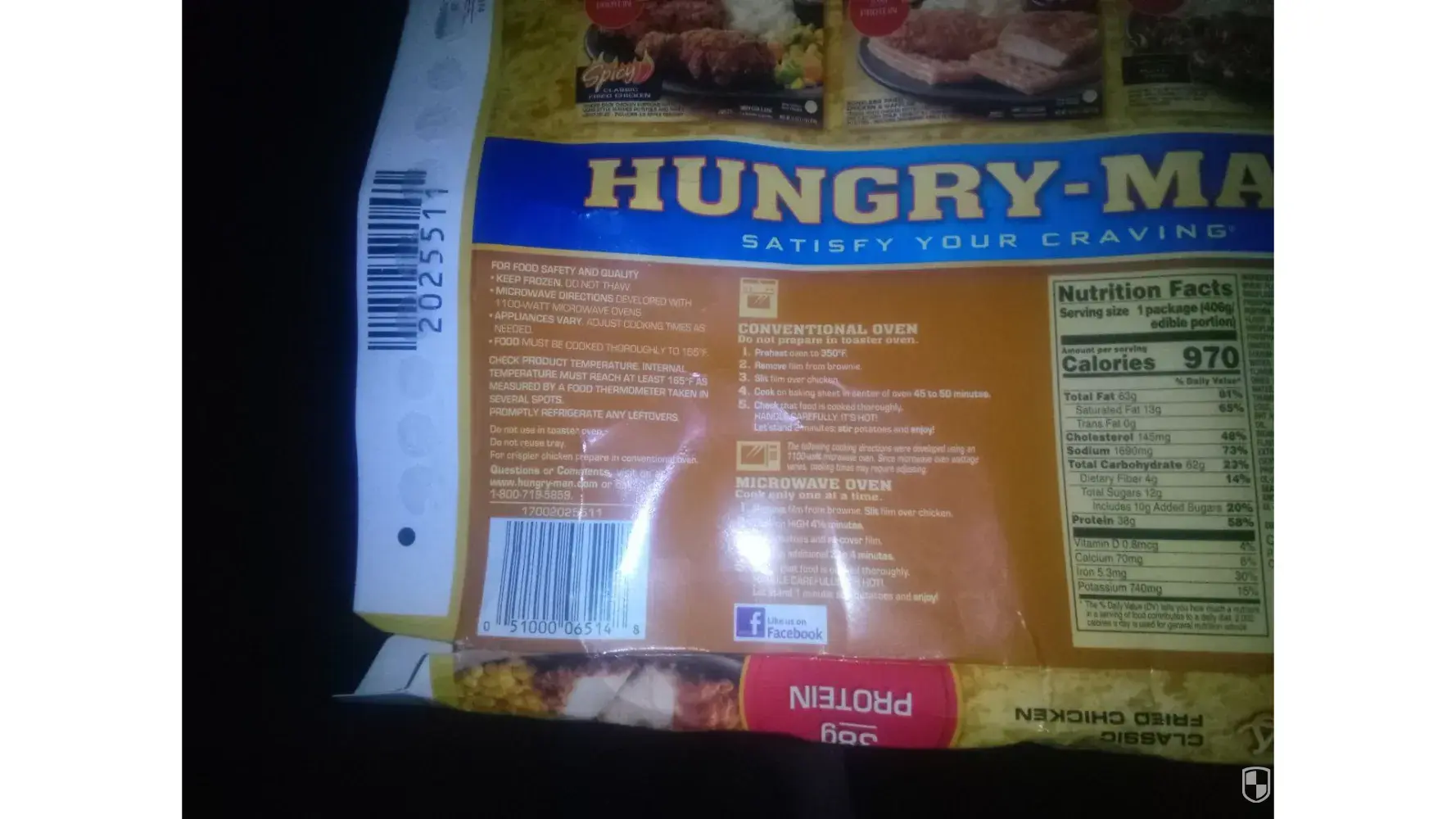 I am complaining about the Hungry Man Selects Classic Fried Chicken meal