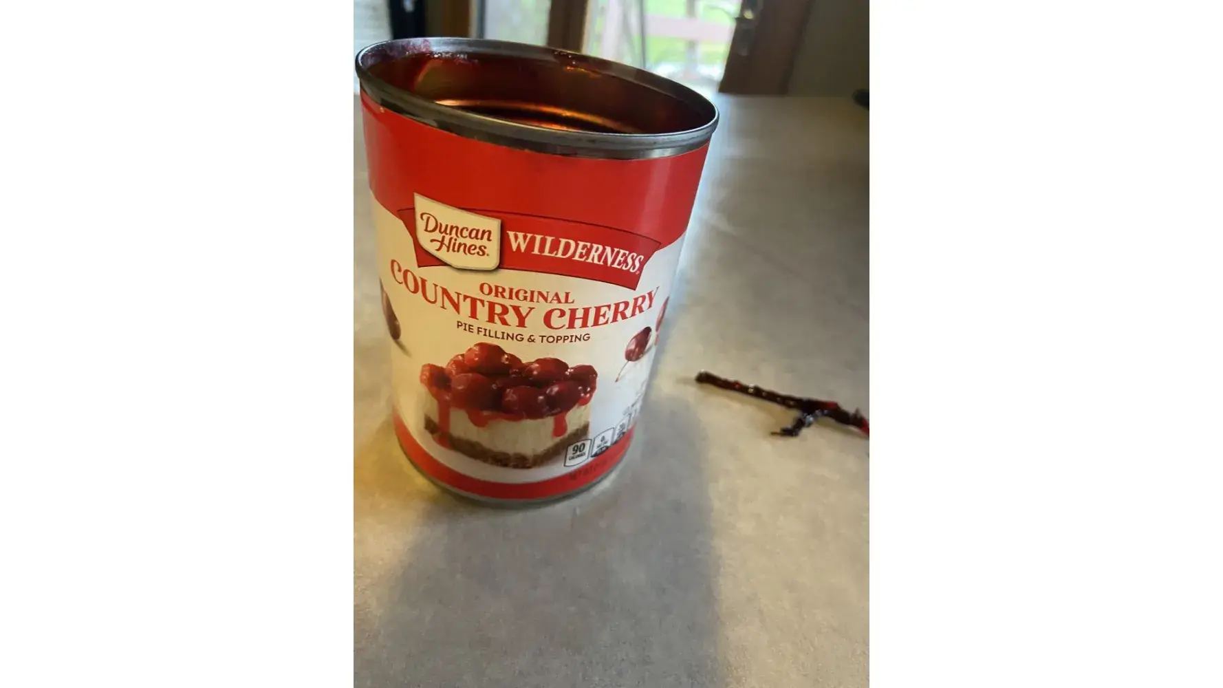 When I poured the pie filling into my dessert dish, I was spreading it out, and there was a 3 inch piece of twig from a cherry tree in it.