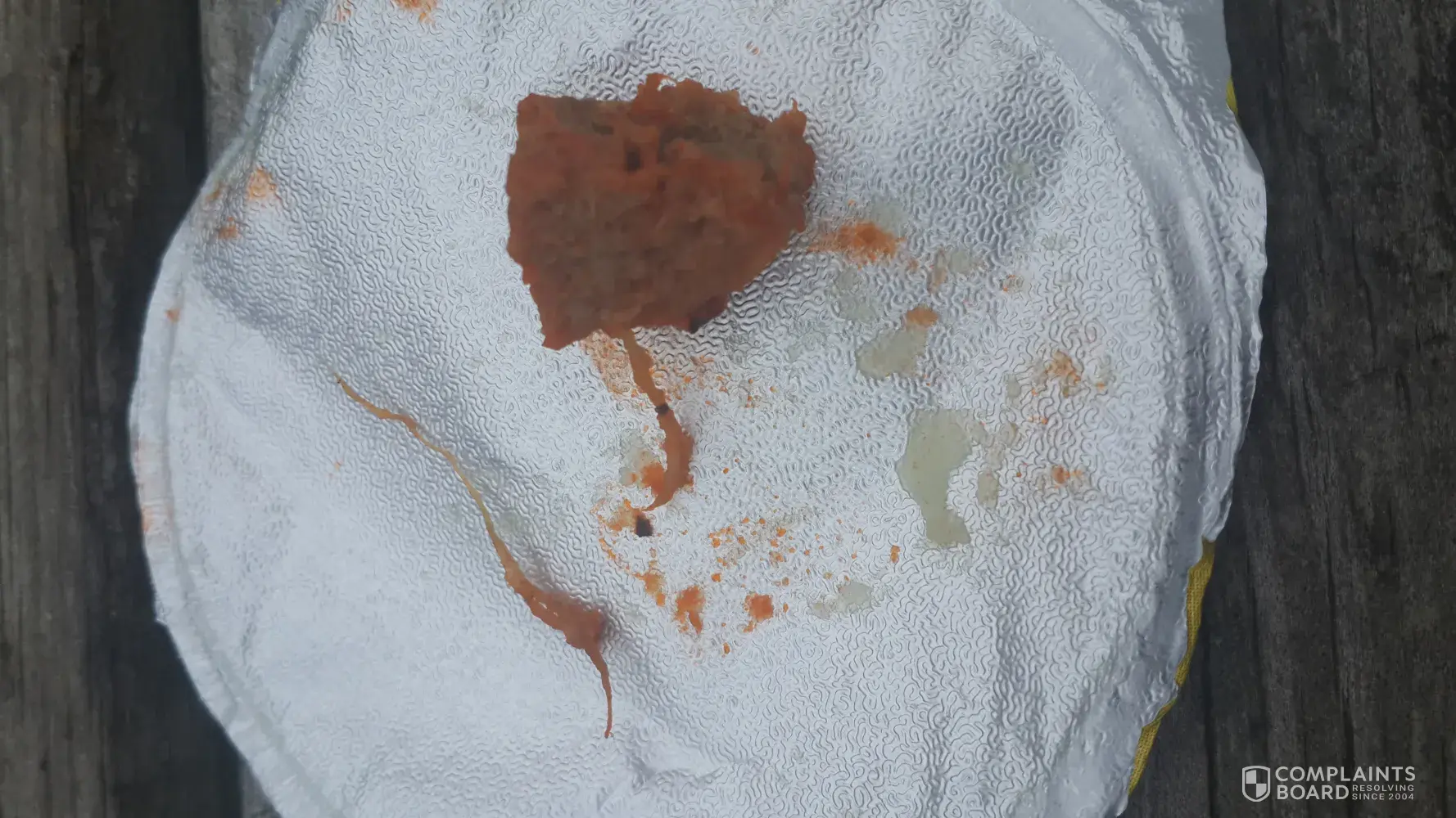 I was feeding my 2 year old Grandson Spaghetti and meatball dinner. That his parents dropped off with him. And when I cut into the 4th meatball to feed it to him there was a stringy worm like thing sticking out...Then I saw more. I stopped feeding him the food... and had to get him something else to eat. There are pictures included...