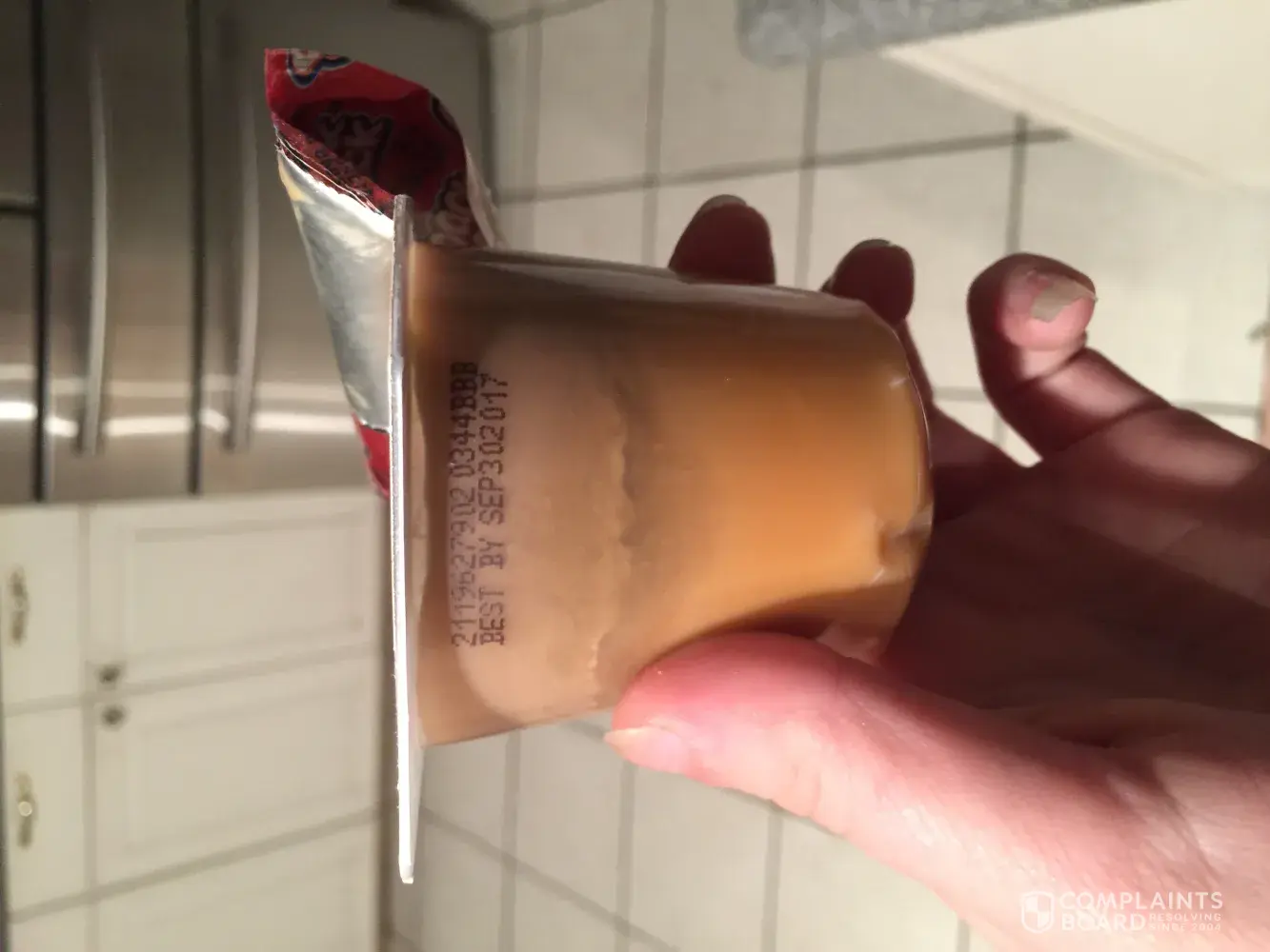 I just opened a new pudding cup for my daughter and I'm discussed with what I found it look like it had some dark drown stuff inside of it and if she would have opened it herself she would have gotten sick you need to check the products you send out as a concerned mother this isn't ok