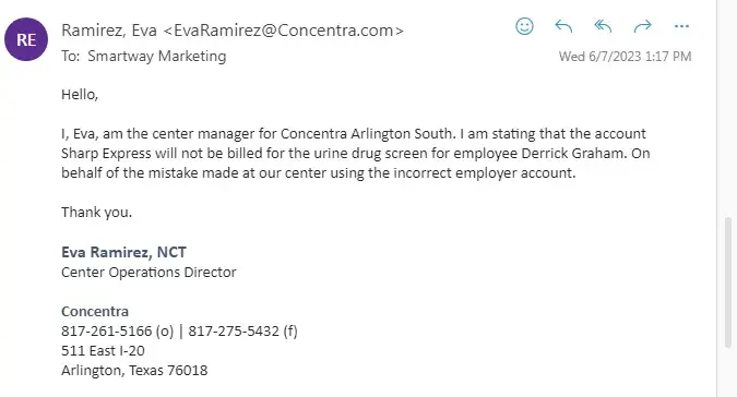OCT 2022 Concentra sent my personal info and drug screen results to a UNAUTHORIZED COMPANY. Therefore my CDL is messed up because of this. Today is 7 May 2023 this issue is still not resolved. I e contacted concentra numerous times about this so now I’m being threatened with legal action if it contact them. I have the emails and all the evidence I need to...