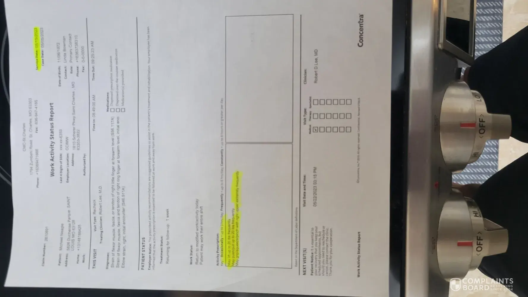 11/11/2025 Health Care Provider Shane O Brooks, D.O. ( Concentra - Tuwila, WA) Diagnosed me for my work related injury w/o MRI or other measures to ensure my healing. Please see below the comments by provider. “Physically well patient, moves all extremities with no apparent deficit, he is very good at showing describing to me the things hje cannot do, but...