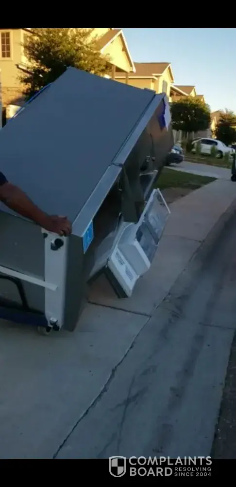 They proceeded to take down the refrigerator, which they repeatedly slammed and dropped inside the U-Haul, same thing happen while they were moving it inside my house. Once again without care.