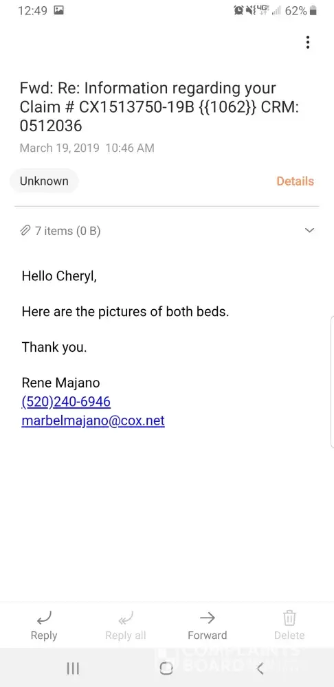 I purchased a furniture sofa set in may of 2018. I filed a claim in december 2018 to repair my couch.in december 2018, they sent out an employee to take measurements. That was the last time I heard from them.