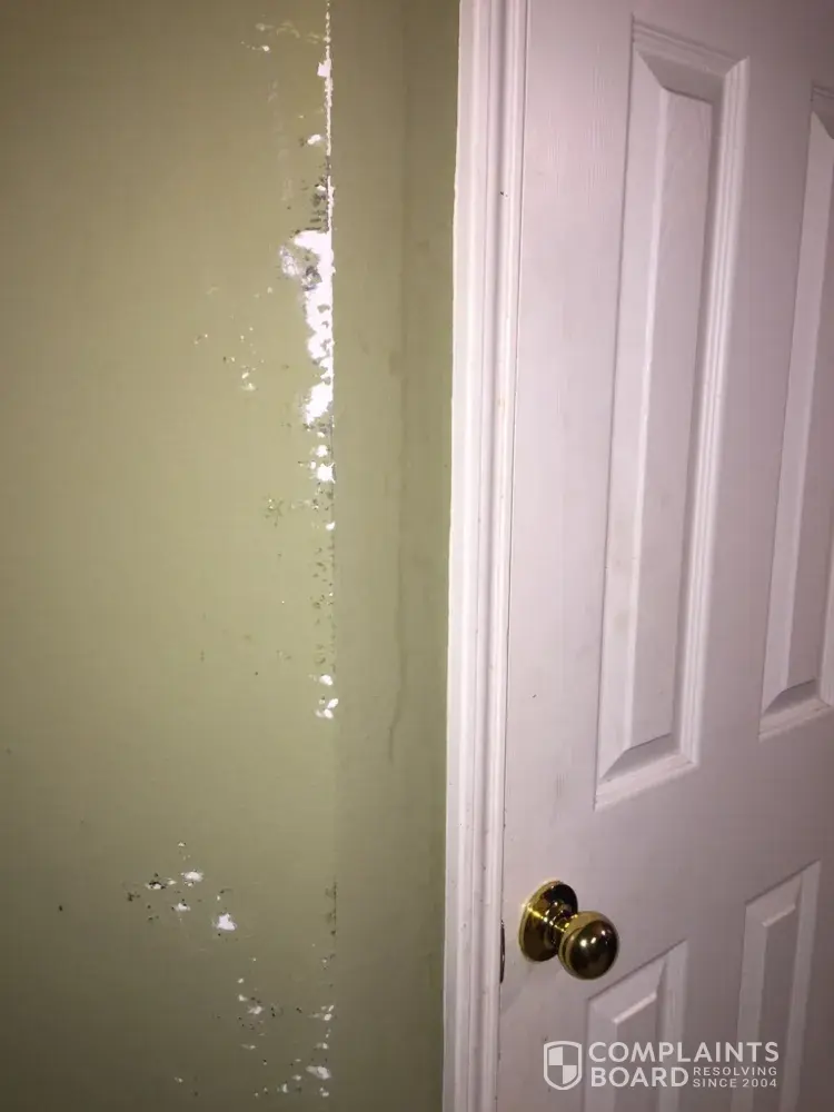 delivery service damaged the kitchen walls and tile with a refrigerator.