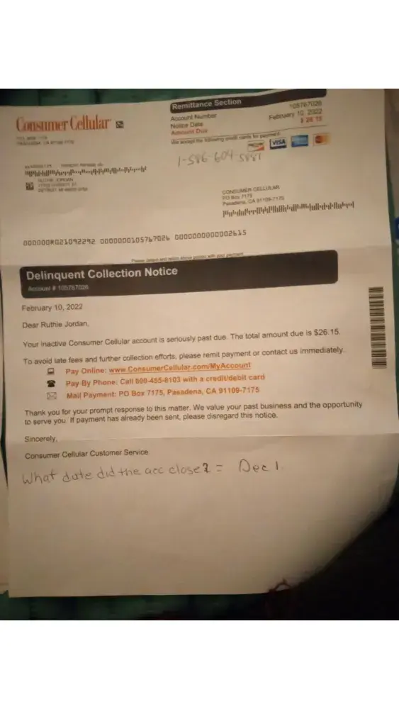 To whom it may concern on September the 1st I changed my phone company and I told single wireless to close my account I had a balance of $30 and I paid the $30 the next month they said that I owe $10 and I just got a paper in the mail that went up to $26 consumer Cellular is price gouging and they have no sympathy for the people going through the pandemic I would like for them to stop sending papers that I owe and take the $26 off my account and leave me in peace thank you