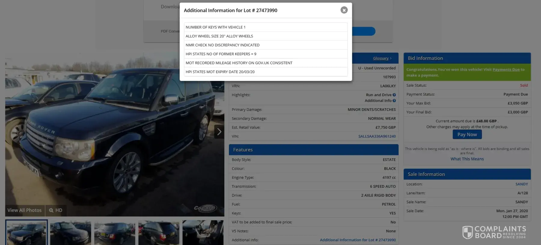This car auction gave false online information for the car and after the sale I was told that according to their Terms and Conditions neither the auction or the seller (in this case Royal Sun & Alliance) are responsible for the description of the cars they selling. This is unbelievable for 21th century Britain. So if you have to deal with this company be aware.