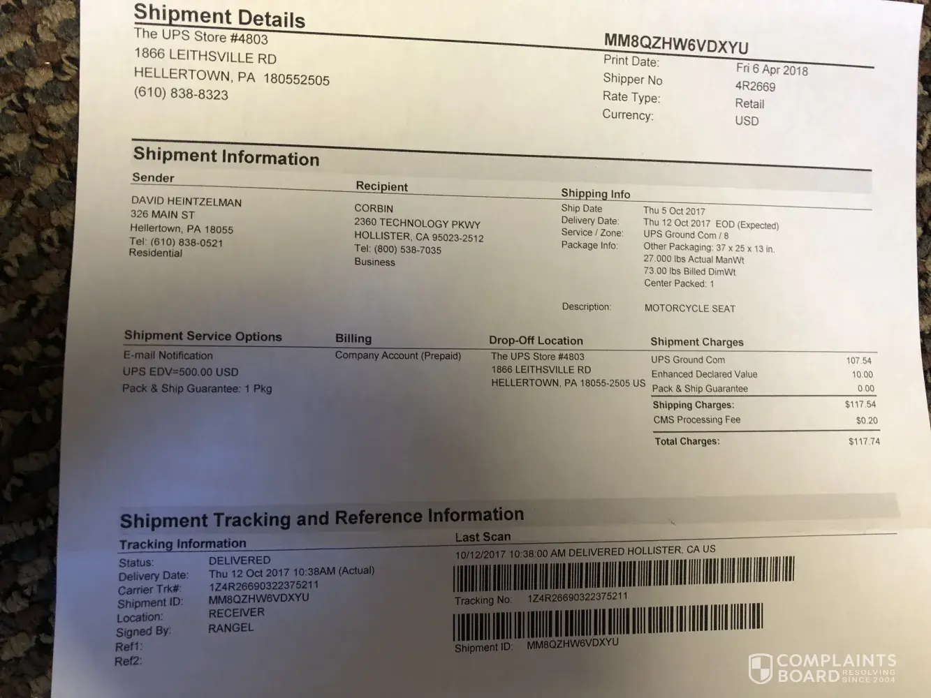 I was in Sturgis 2017, SD and stopped in at the Corbin trailer. I talked to Christopher who explained I had the wrong seat for the bike and wrote on his business card exactly what to do. I did this in October 2017. Now after contacting them, they said they never received the seat and I didn't follow the minatory return policy. Did I say I had Christipher's own writing what to do, signed UPS delivery tracking time and date. Even checked that the person who signed for the seat continues to work there!.