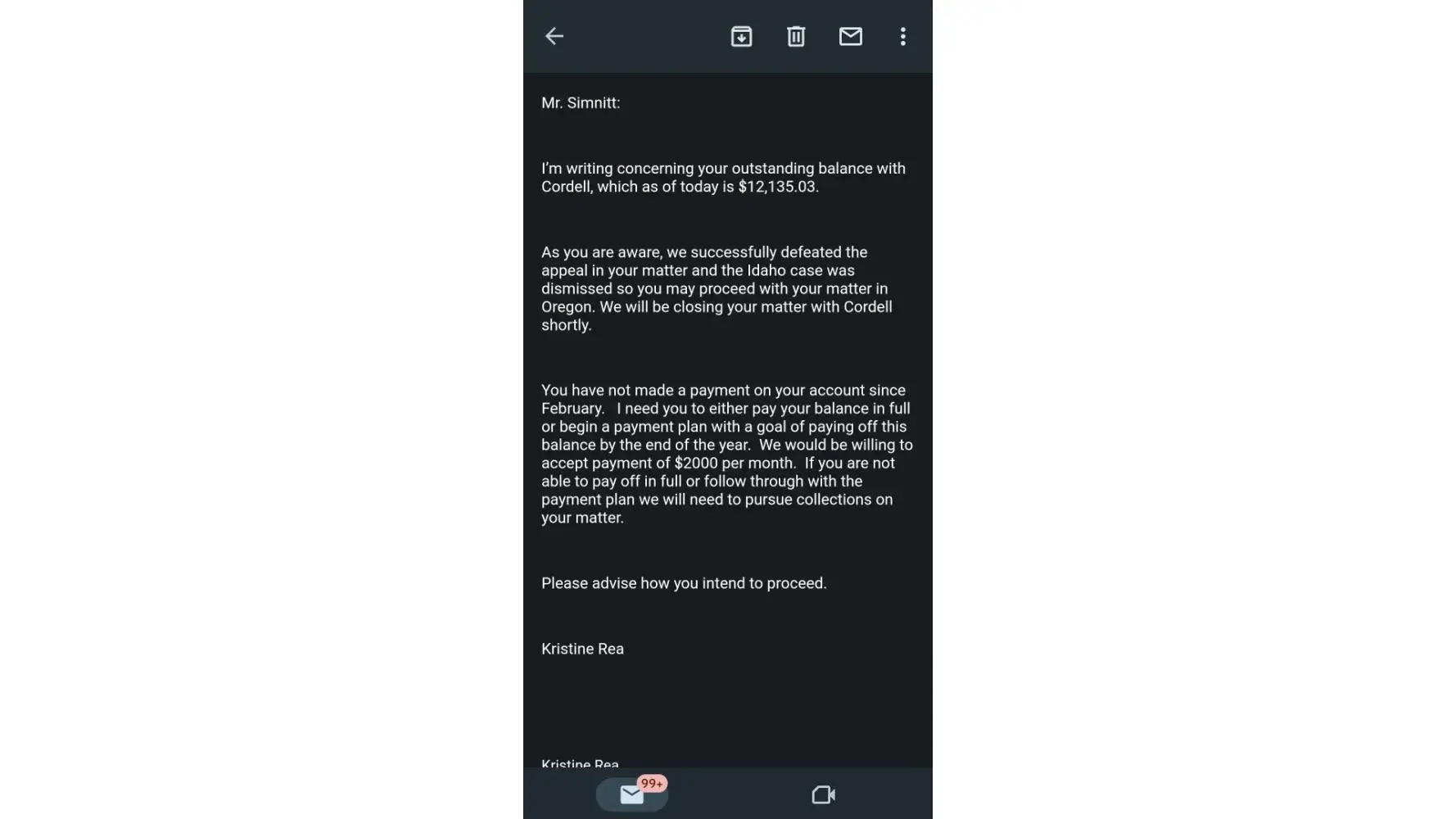 A zero dollar balance! $10, 000 dollars! Only 3 motions filed! A year in court! And