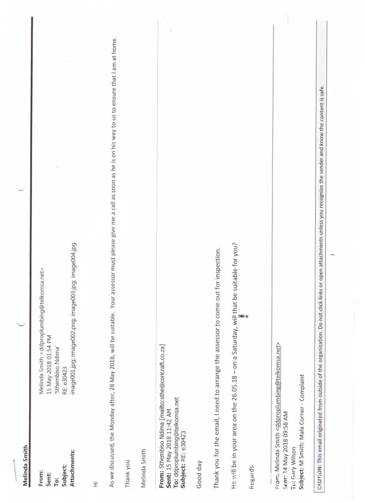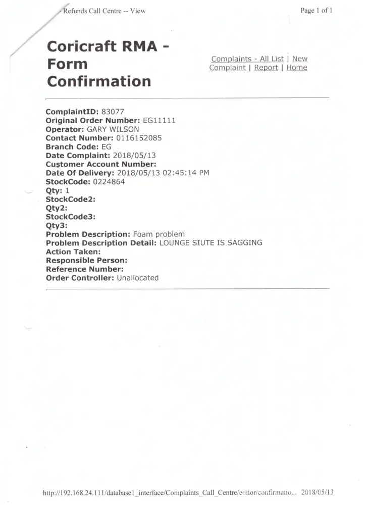 I lodged a complaint with Gary Wilson at the East Gate branch on 13 May 2018.