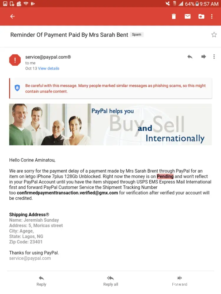 I sold an iPhone 7 plus to a lady on Letgo.we agreed the price for 750$ and she was to send the money via paypal, is been a month today nothing has been done and I have shipped the product, which has been delivered.the lady profile is no longer actif on letgo, and she blocked my number, please I need to be reimburse.thank you so much