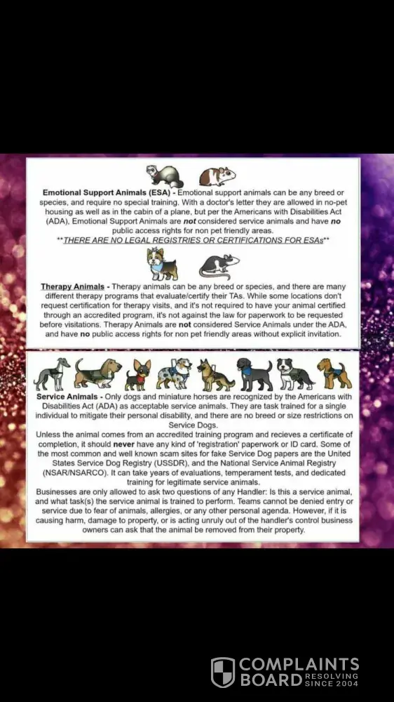 I am contacting you regarding your recent Snapchat article about Emotional Support Animals. The information in your article is incorrect and is going to lead to legal action being taken if the incorrect information isn't corrected. As per the ADA, ESAs have NO unlocks access rights. Putting the information out there that they have PA rights is going to cause problems such as arrests to those who believed the article and brought their ESA with them, lawsuits to stores that allowed ESAs in and they caused damage, lawsuits where ESAs attacked legitimate service animals, etc. ESAs are usually untrained, meaning they pull at the leash, bark, jump on people, and sometimes show aggression. There are laws in place to keep service animals and the public safe, but you are going to convince your readers that those laws are wrong. Because of false/misleading information found in your article, legitimate service dogs have had to retire from having fake or even legitimate ESAs attack them. Because of the lack of research that goes into your articles, I'm suprised the business is still running. Please educate your staff and teach them to do research before they post. You'd think professional writers would know that. I'm very disappointed and will be in contact with my lawyer. What is the Cosmopolitan Snapchat Suprvisor's phone number? Fake ESAs and Service Animals are such a huge problem. I want to be able to go out with my SD and live normally, but every time I go I have to watch our backs for fakes and ESAs. My life could actually be in danger if she missed an alert because a ESA or fake was distracting or attacking her. We've been attacked before by a ESA in a place it should not have been.