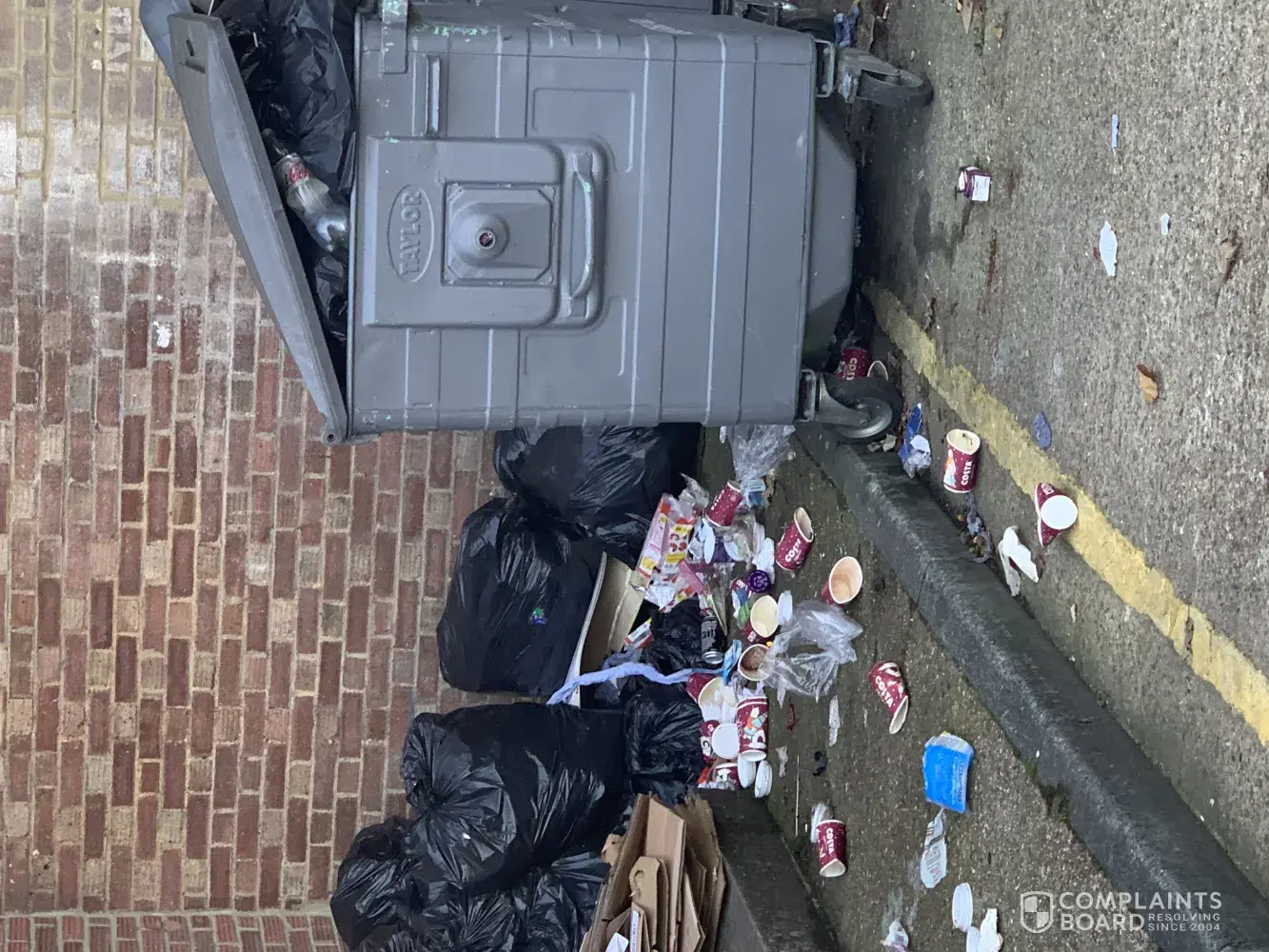With overflowing bins which blow everywhere and make our place look like a tip.