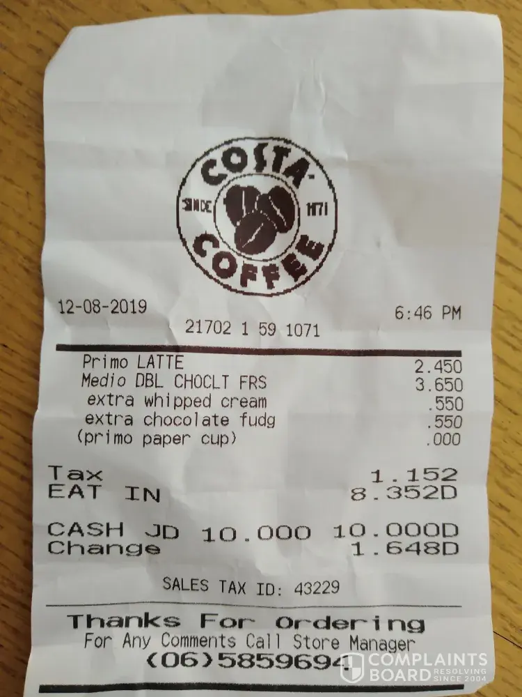 Costa Coffee is definitely not one for the trustworthy eateries for me from now on.