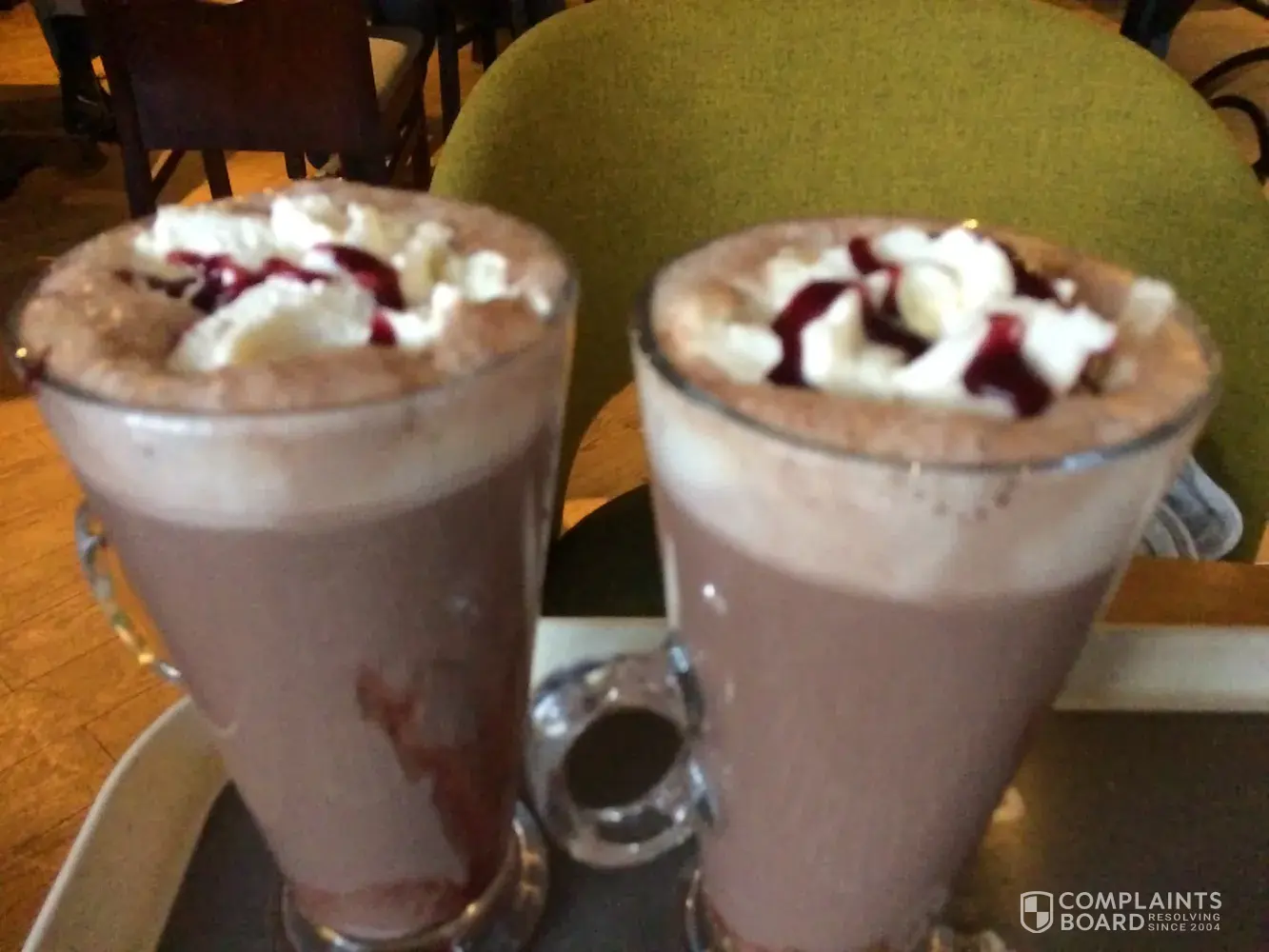 I have taken a picture of the drinks we received and would like either the money back or a chance to get the Black Forest Hot Chocolate drinks we were expecting for the advertisements we have seen?