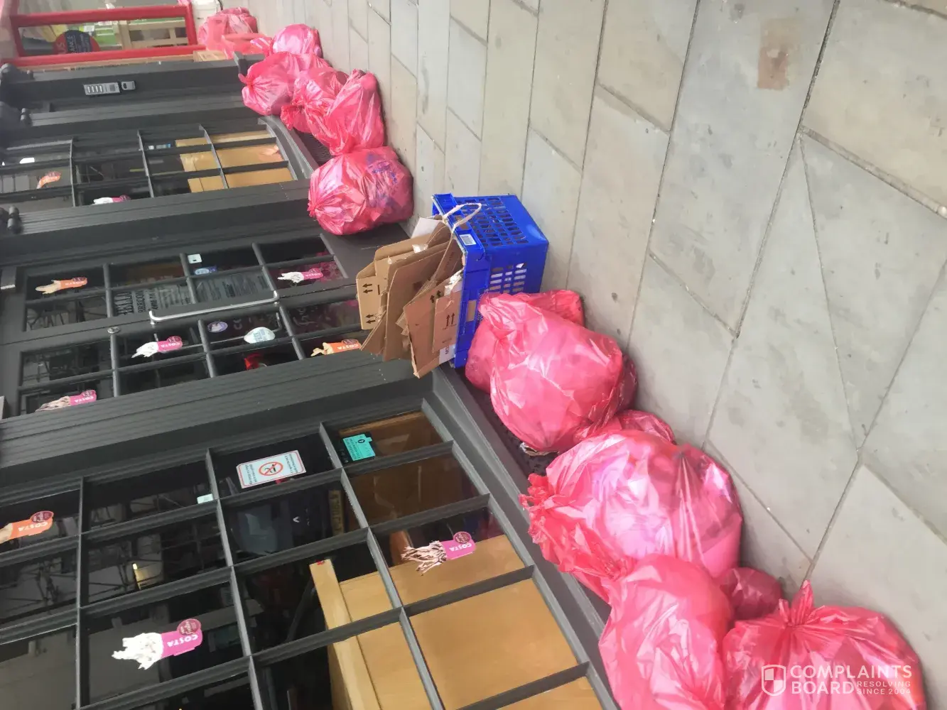 rubbish left outside costa in evening