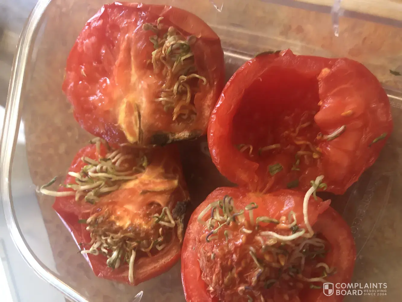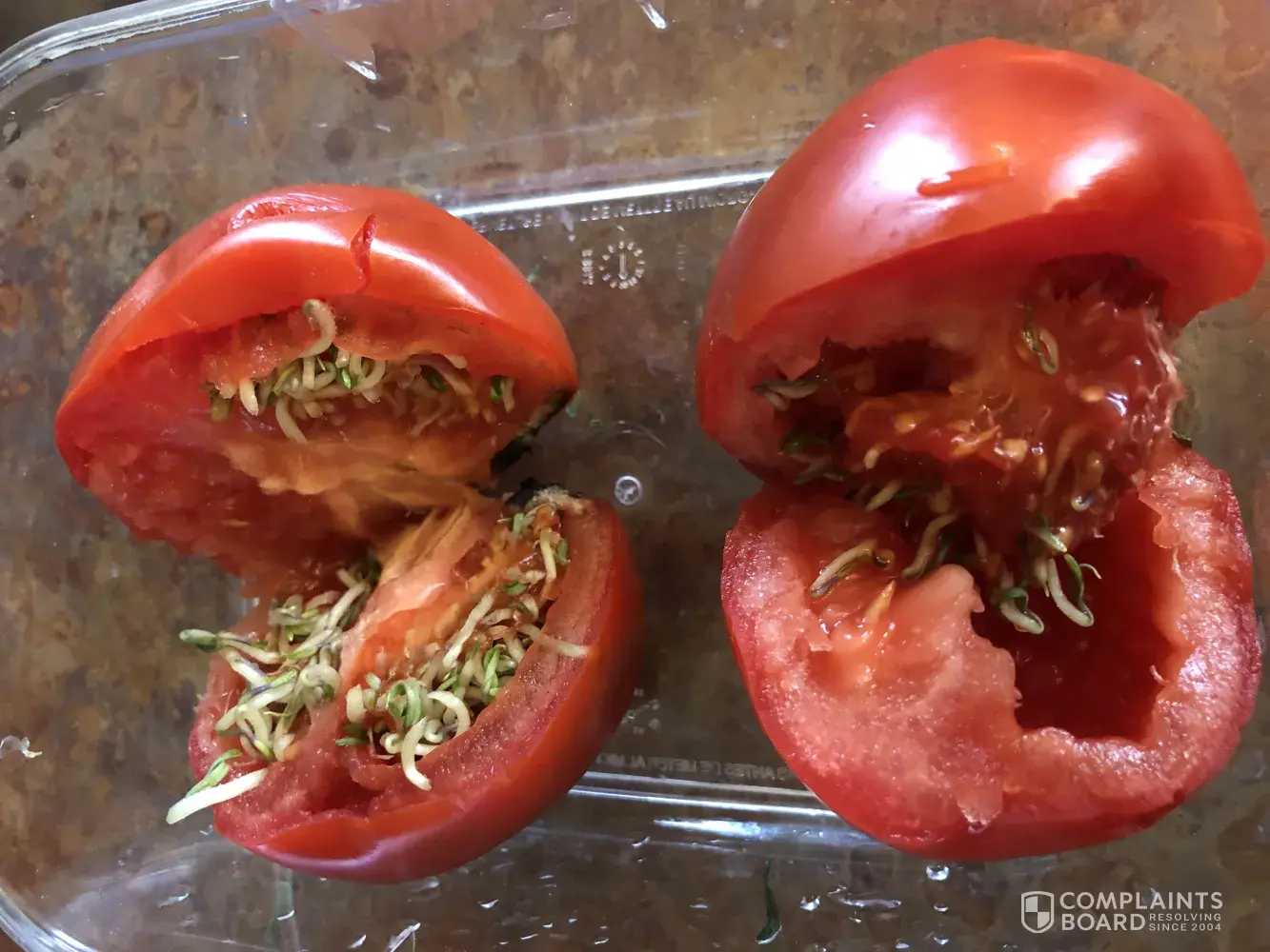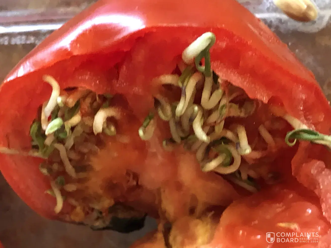 I purchased tomatoes in Costco at Parker Colorado location. After a few days I realized that tomatoes changed appearance, its became with strange pimples when I opened it, I saw horror movies unfolded. The tomato seeds growing from inside out... I never saw that in my entire life, I decided to bring it to attention to my local store when I checked next day tomatoes, the growing stopped and look dead. It means only that growing do not need an oxygen, so ?! It's sound crazy but it is definitely not organic product! I am not shopping for my produce in Costco any longer!