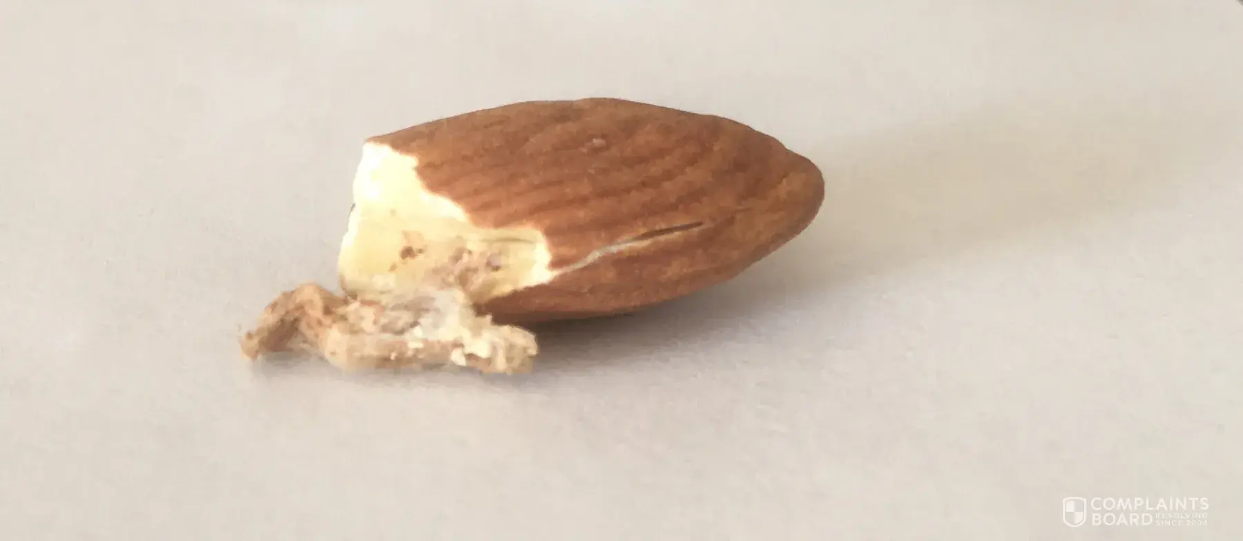 Has many worm hole almonds. One with a larvae like substance attached on it.